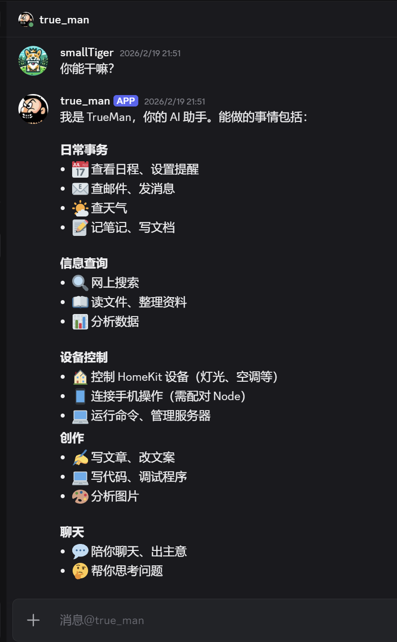 完成以上所有配置后,就可以开始使用 OpenClaw Bot 了!