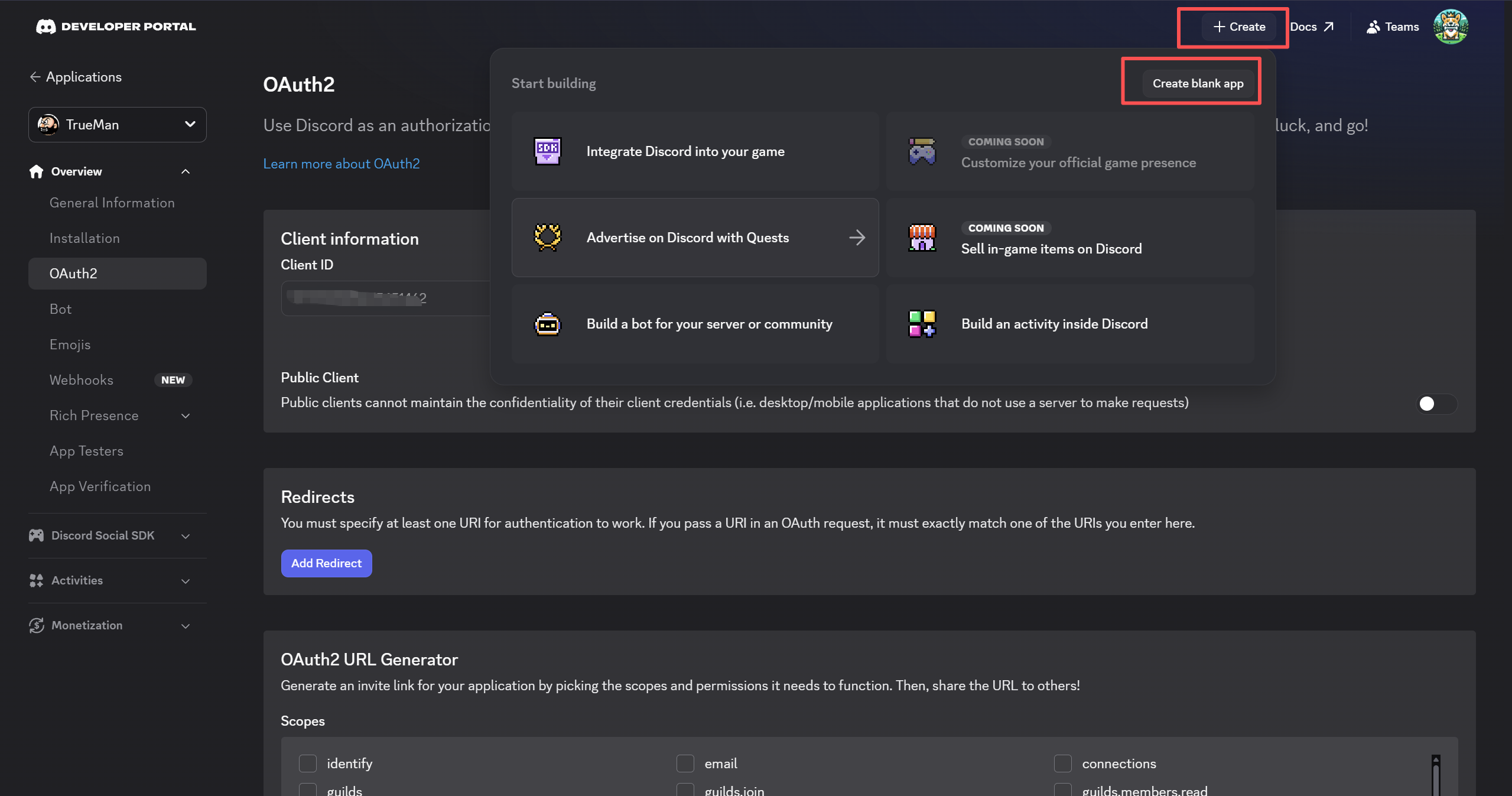 首先,我们需要前往 Discord Developer Portal 创建一个新的 Application(应用)。