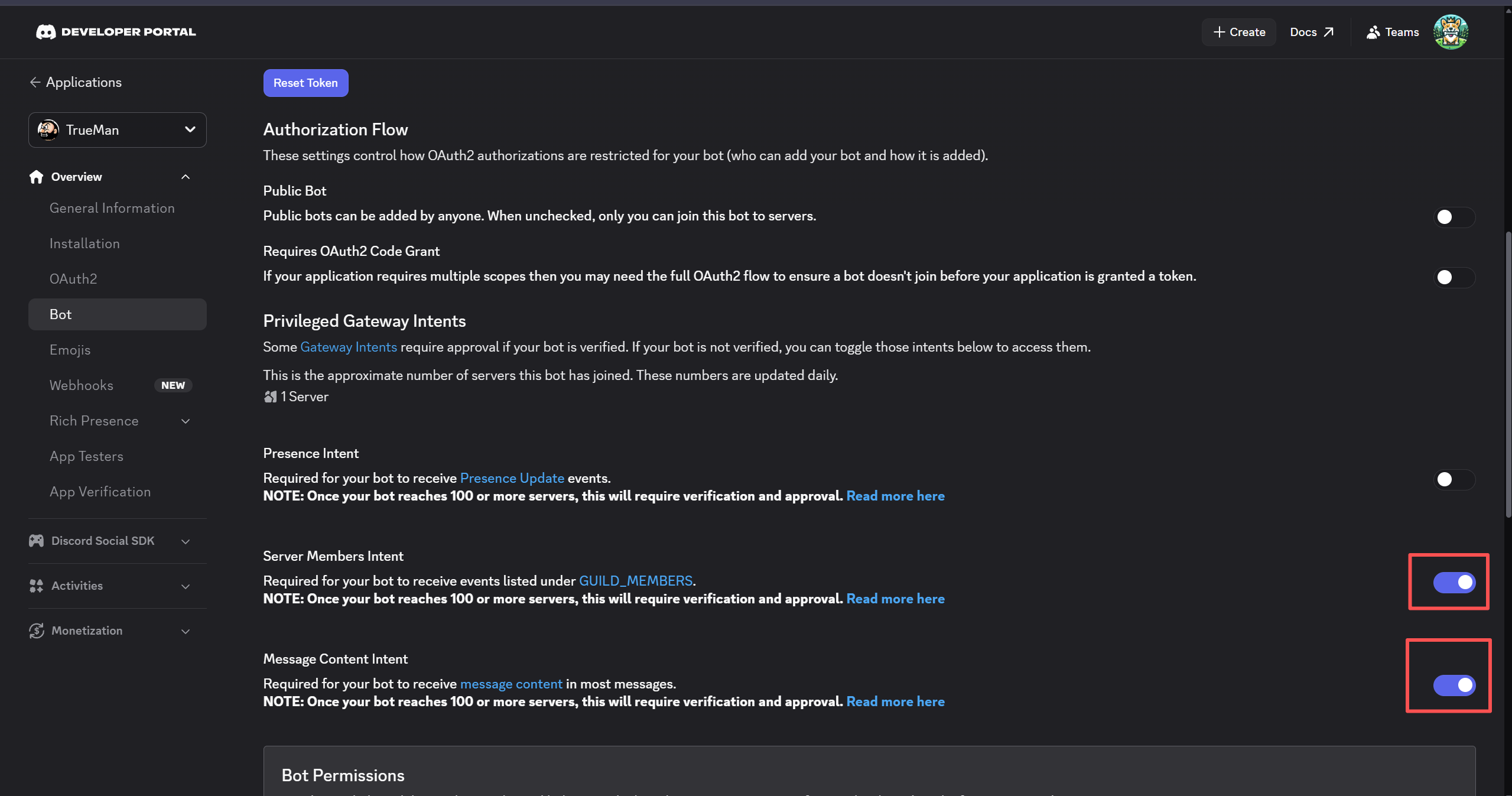 💡 小提示:如果不开启这个意图,Bot 将无法读取任何消息内容,导致功能失效。